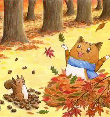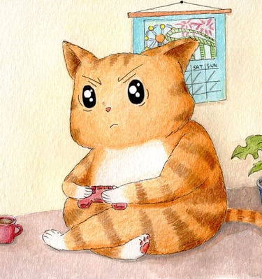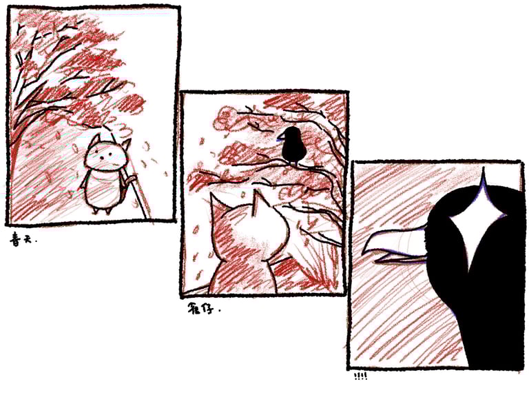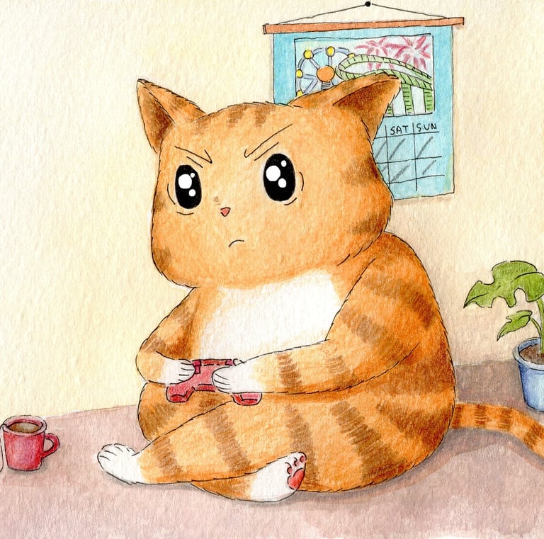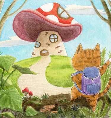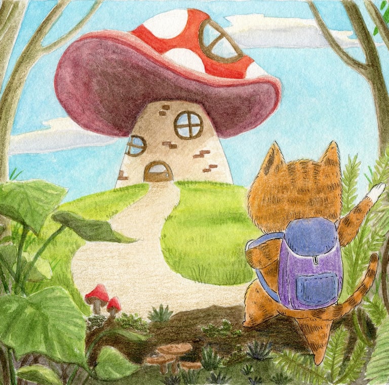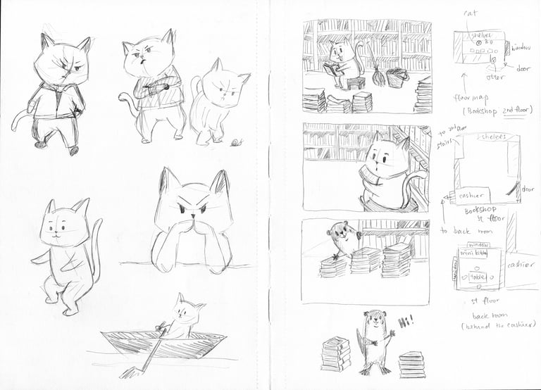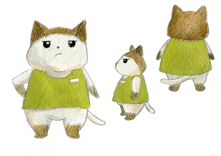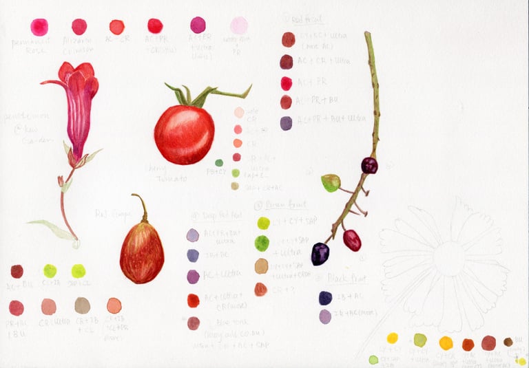 I practice drawing backgrounds digitally to experiment with different colour palettes, from orange sunsets to bright blue skies in summer.
